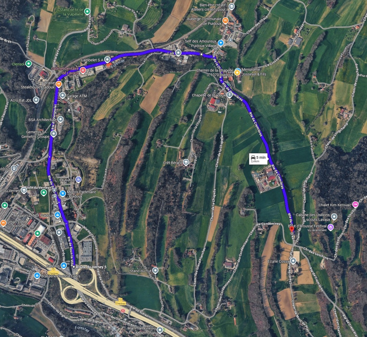 Depuis la sortie d’autoroute Puidoux–Chexbres, suivez les panneaux « Bout d’brousse Orange » en passant par Puidoux-Village pour arriver au parking du festival.