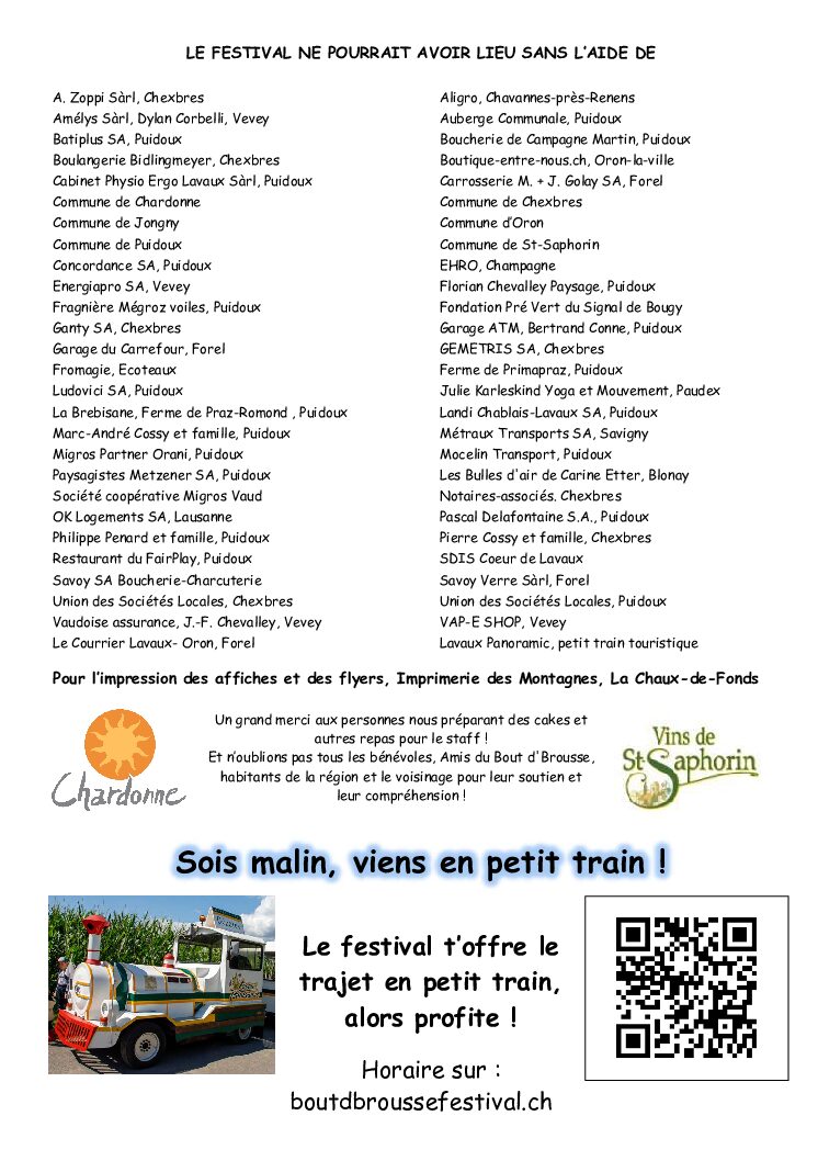 Afin de pouvoir organiser un festival comme le Bout d’Brousse et de maintenir l’entrée du festival gratuite, l’aide de nos sponsors est primordiale.